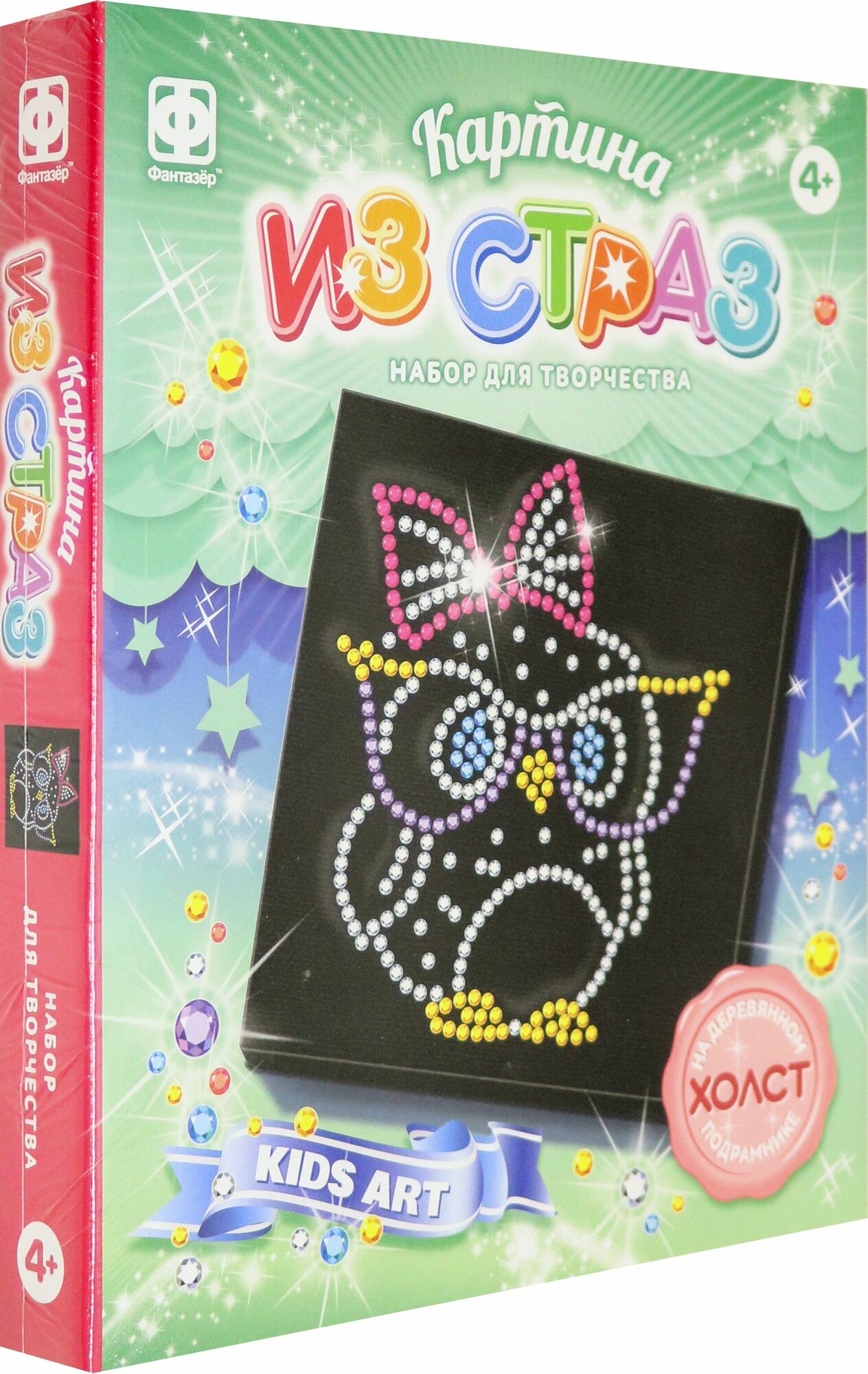 В набор входит: холст на подрамнике, разноцветные стразы, шаблон-инструкция.
