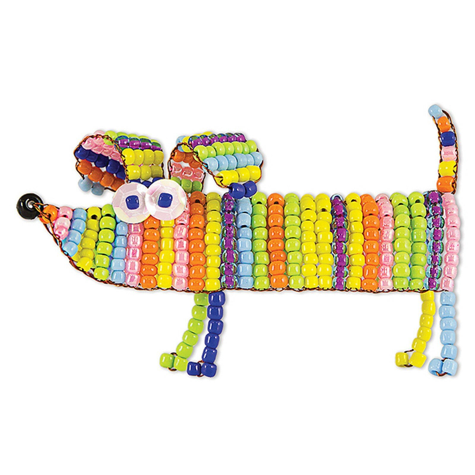 Длинная такса «Тако» с большими удивлёнными глазами, большими ушами и тонкими лапками будет прикольно смотреться как подарок, так и в коллекции бисерных фигурок.