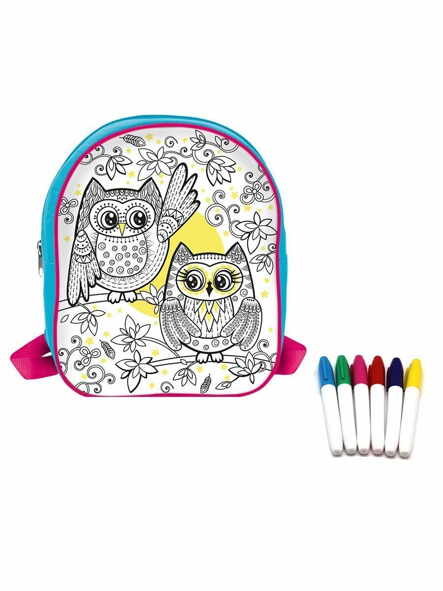 Предложите юной моднице почувствовать себя дизайнером и раскрасить красивый рюкзачок с веселыми совятами. Водостойкие маркеры позволят краске не бояться даже дождивой погоды, а плотные контуры предотвратят растекание цветов! Такая творческая работа очень полезна - она развивает мелкую моторику, цветовосприятие, креативное мышление и воображение ребенка. Родителей обязательно порадует качество и вместительность рюкзачка, а девочки станут обладательницами неповторимого аксессуара! Блестящий результат восхитит всех!