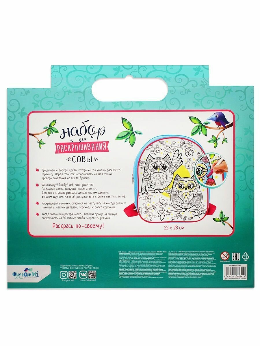 Сумка-рюкзак для раскрашивания Совы (05641) ОРИГАМИ