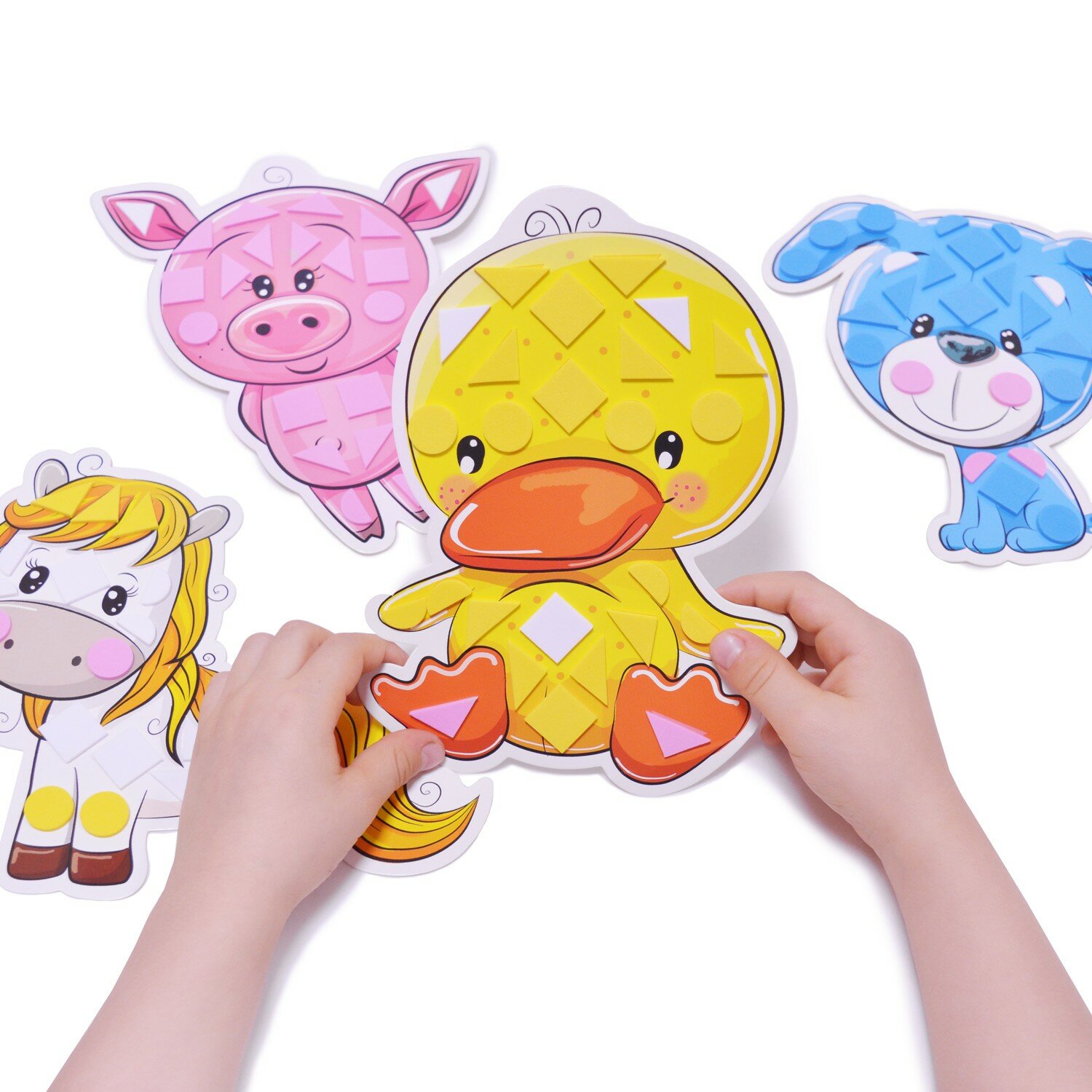Аппликация — это интересное и полезное занятие для детей разного возраста. В коробке вы найдёте всё для создания замечательных поделок: четыре симпатичные фигурки животных из картона и детали из мягкого пластика на самоклеящейся основе. Мы сделали фигурки и детали крупными, чтобы малышам было проще освоить аппликацию. В игре развивается мелкая моторика, глазомер и цветовосприятие.