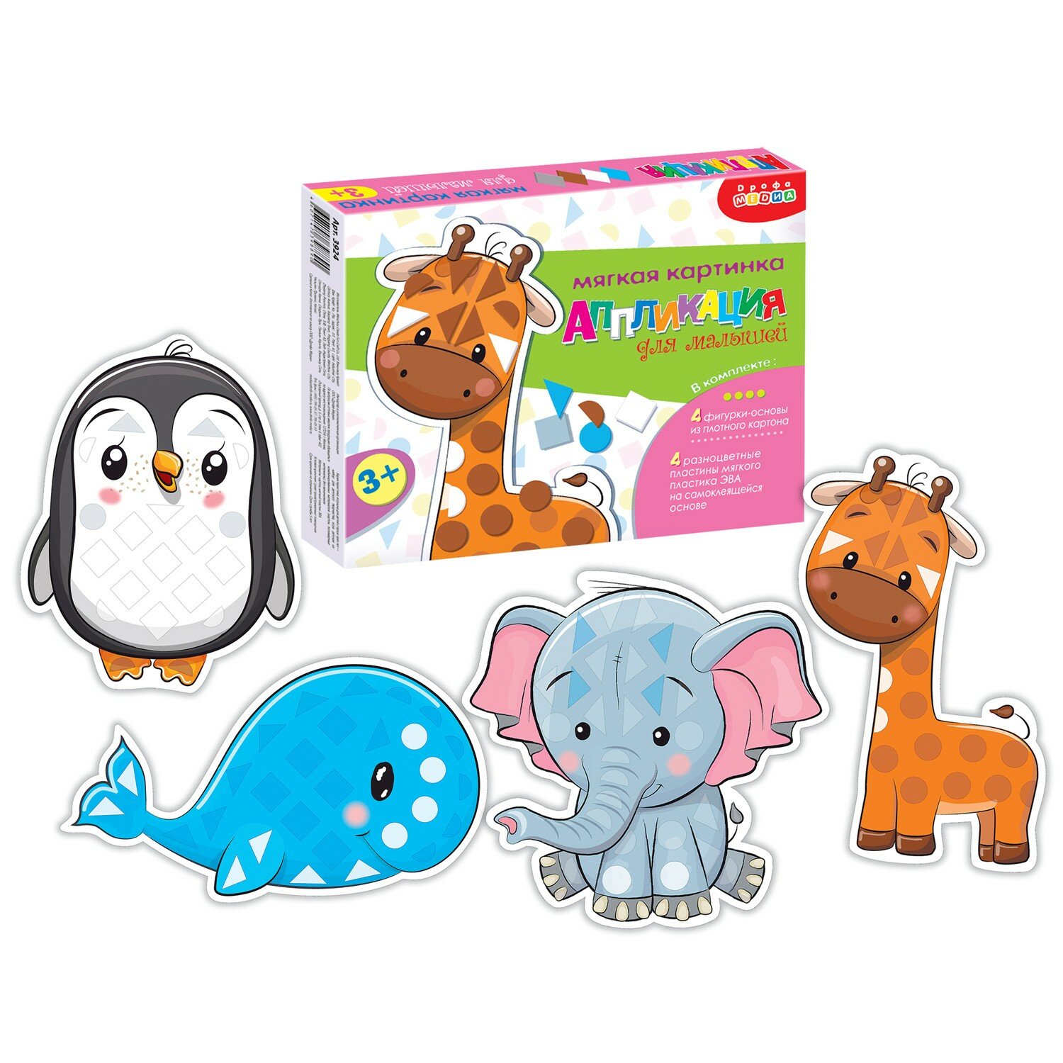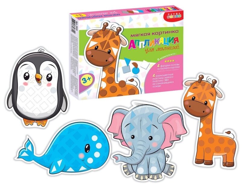 Аппликация — это интересное и полезное занятие для детей разного возраста. В коробке вы найдёте всё для создания замечательных поделок: четыре симпатичные фигурки животных из картона и детали из мягкого пластика на самоклеящейся основе. Мы сделали фигурки и детали крупными, чтобы малышам было проще освоить аппликацию. В игре развивается мелкая моторика, глазомер и цветовосприятие.