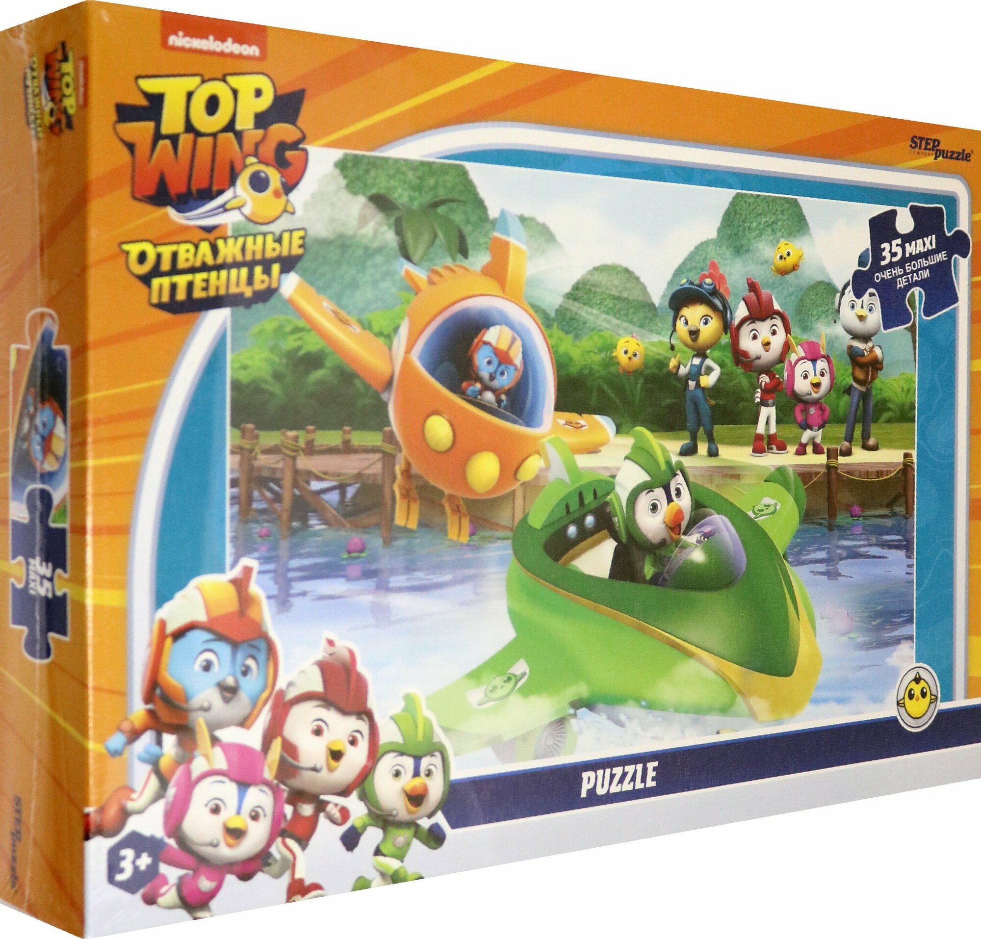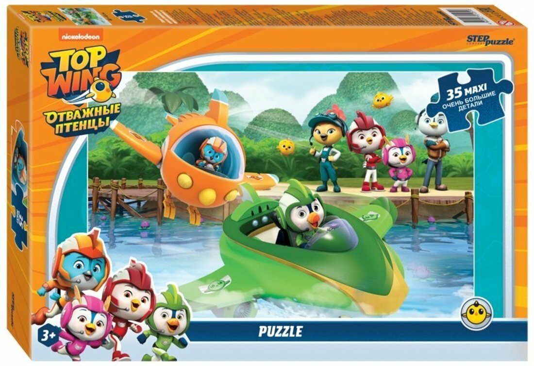 Пазл «Отважные птенцы» состоит из 35 крупных деталей. На его картинке мы видим Свифта и Броуди, а также их друзей и учителей.