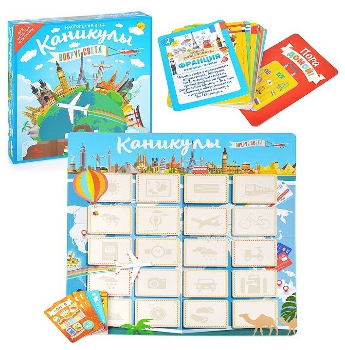 Проведите свои лучшие каникулы! Отправляйтесь в захватывающее путешествие, в котором вы познакомитесь с культурными особенностями разных стран, посетите экскурсии и соберете коллекцию воспоминаний. Но поспешите! Каникулы всегда подходят к концу, и главная задача игроков - увидеть как можно больше интересных мест! Победит самый быстрый путешественник!