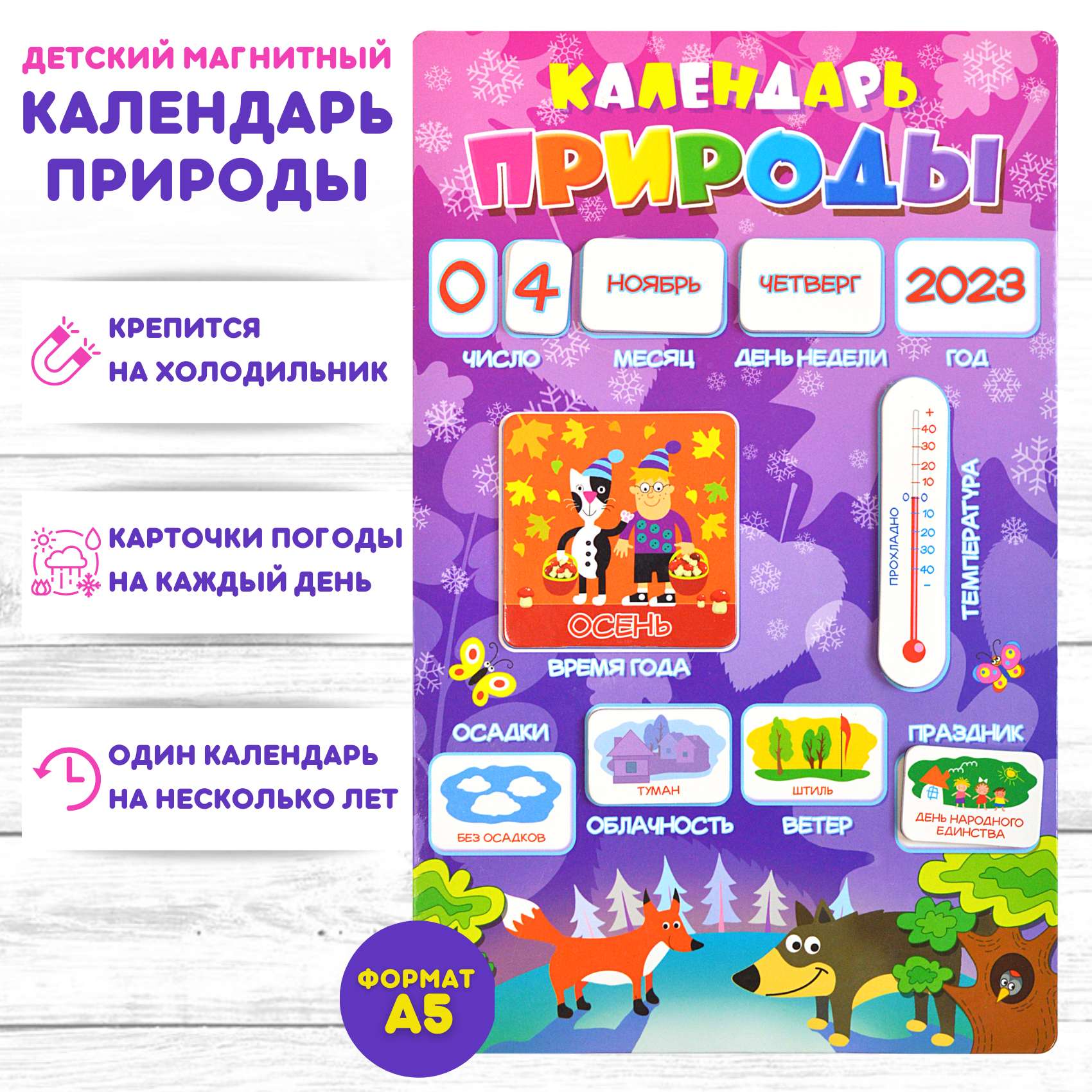 Наблюдайте за погодой и заполняйте с ребенком Календарь природы ежедневно. Познакомьтесь с временами года, месяцами и днями недели, узнавайте о видах погодных и природных явлений, о народных и государственных праздниках, учитесь определять температуру воздуха.