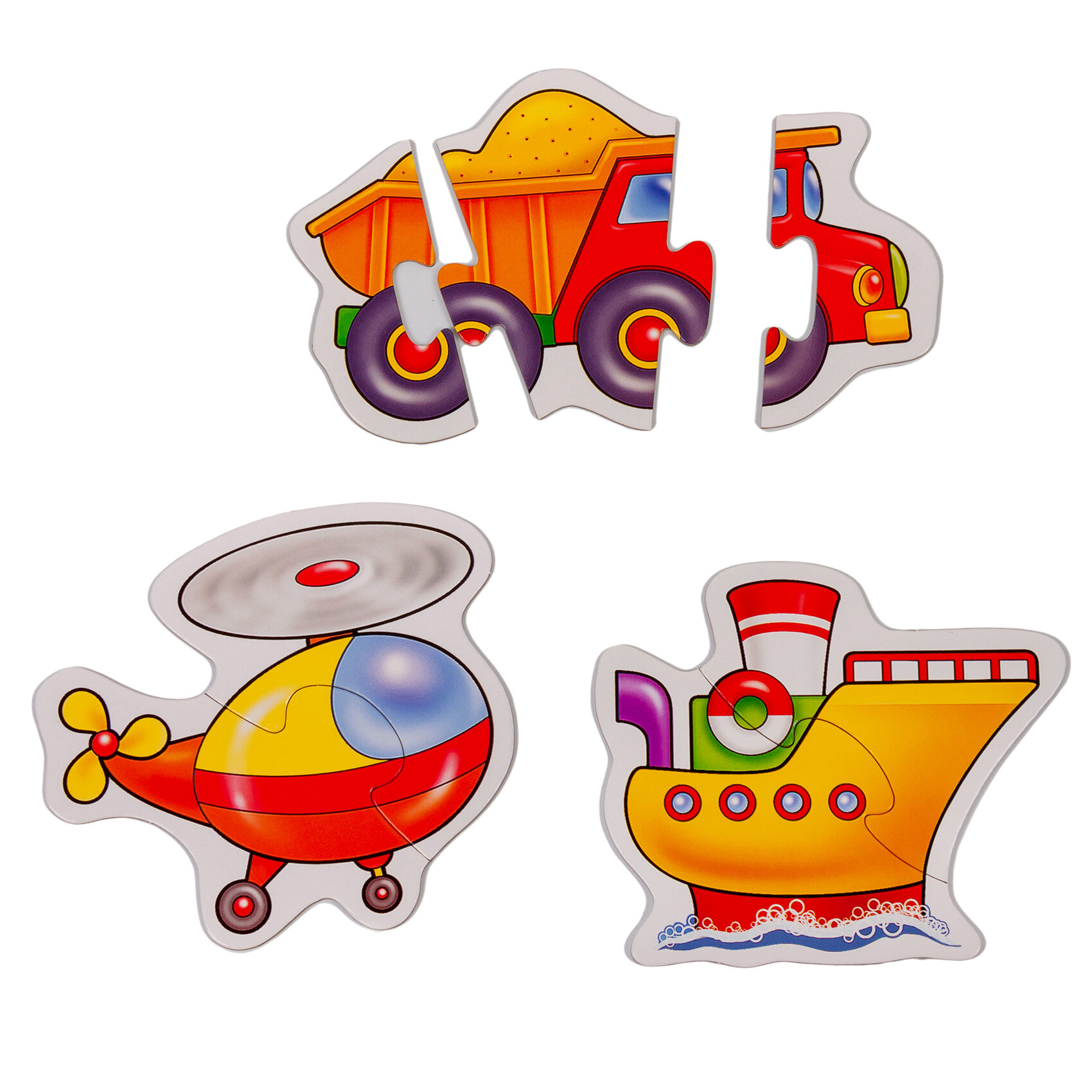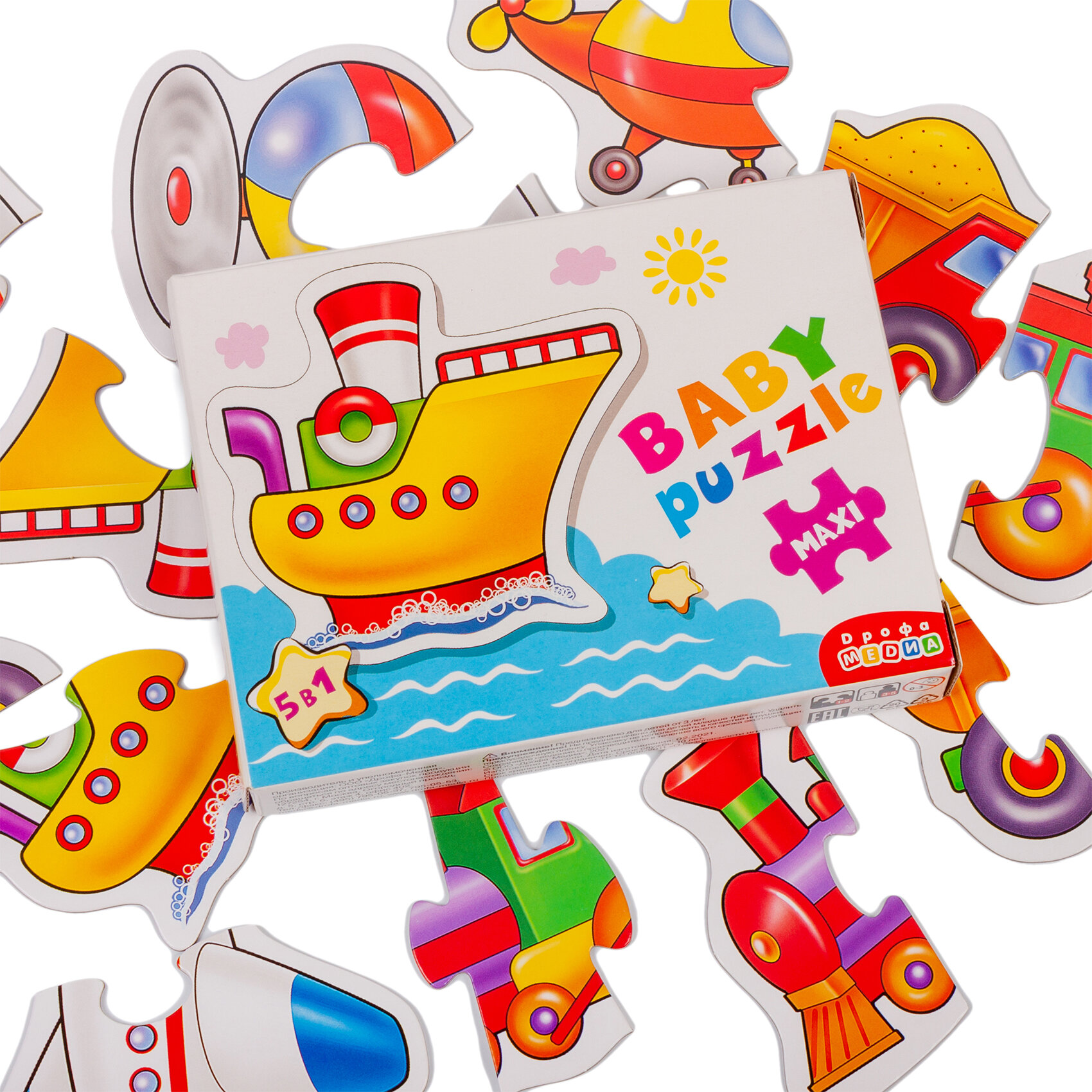 Крупные пазлы подходят для самых маленьких и помогут разнообразить занятия с ребёнком, сделать их интересными и полезными. В наборе 5 фигурок, разделённых на 2-3 элемента. Яркие узнаваемые картинки привлекут внимание малыша, а крупные детали из плотного картона помогут в развитии мелкой моторики.