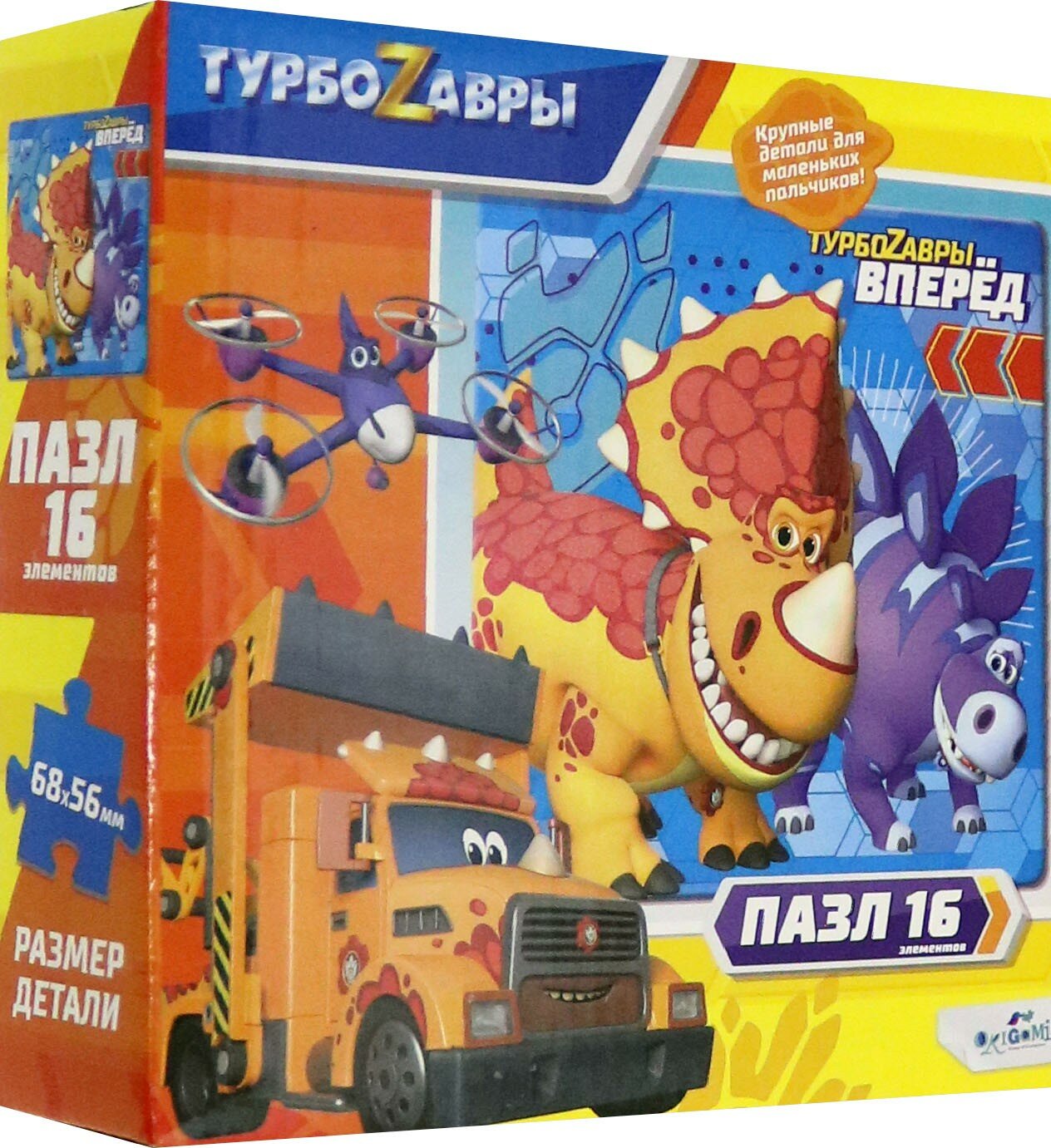 Пазл 16 элементов с любимыми персонажами мультфильма Турбозавры понравится любому ребенку, а сборка яркой картинки принесет радость не только малышам, но и их родителям. Соберите всю коллекцию новых пазлов!