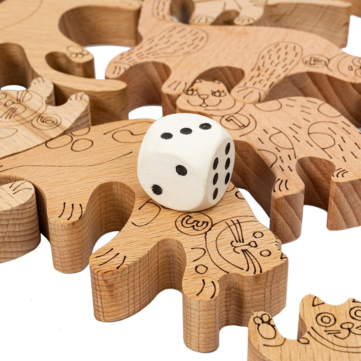 Каждая фигурка создана вручную из массива бука, благодаря этому с котиками могут играть даже малыши. Они не имеют мелких деталей, ядовитых веществ, которые могут попасть в рот и навредить малышу.