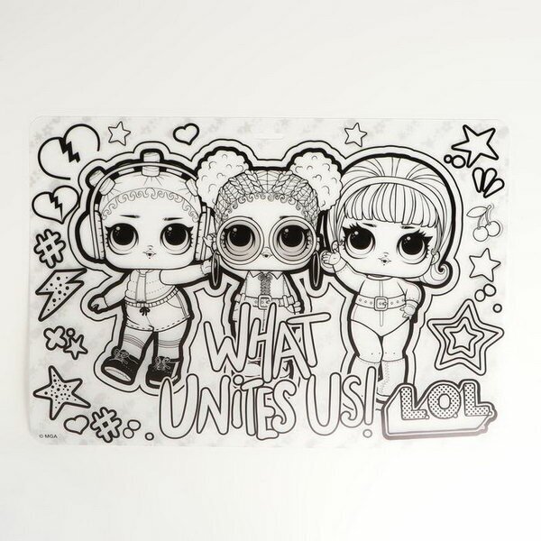Коврик-раскраска - лучший подарок для маленькой художницы! Ребенку необходимо творческое самовыражение, а что может быть лучше рисования. Девочка с удовольствием будет создавать любимых персонажей, проявляя свое воображение и способности. Раскраски помогают ребенку научиться сочетать цвета, развить чувство вкуса. Коврик можно раскрашивать карандашами, фломастерами, красками и даже используя пластилин. Он сделан из специального материала, который достаточно протереть влажной салфеткой, после чего снова рисовать. Коврик очень прочный и устойчив к внешним воздействиям. По сути, это оригинальное защитное покрытие для рабочего стола. В ассортименте 6 вариантов дизайна. Коврик-раскраска LOL Surprise! помогает ребенку максимально проявить свои творческие способности, тренирует внимательность, усидчивость и мелкую моторику. Рисование снижает стресс, дает эмоциональную разгрузку, оказывает терапевтический relax-эффект.