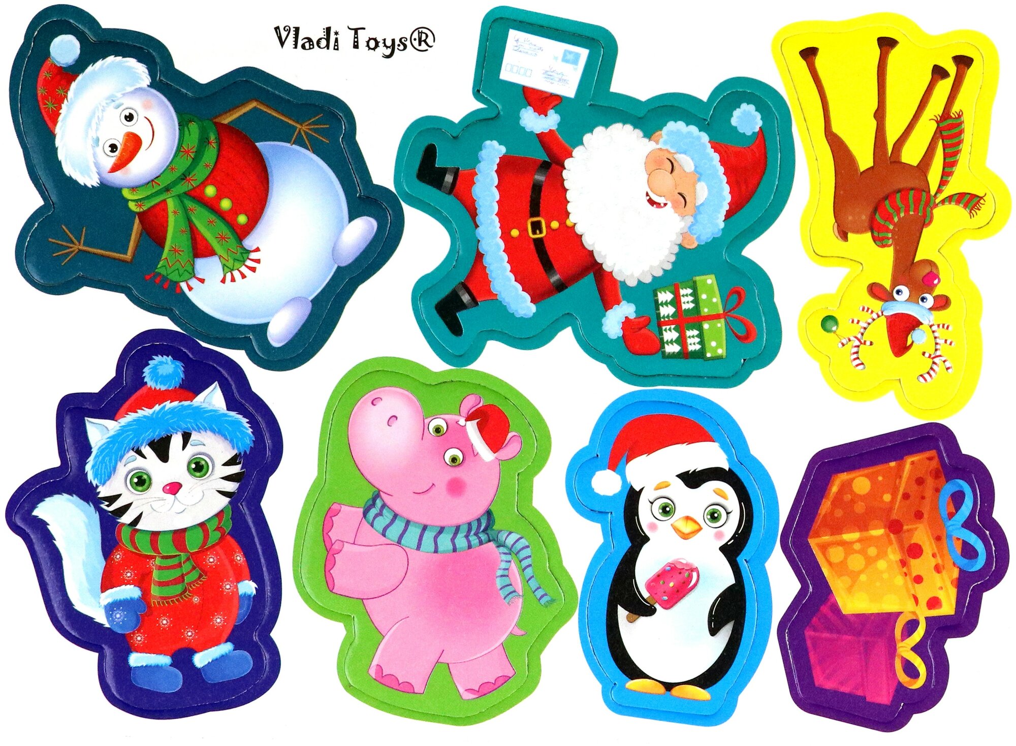 Набор мягких магнитов познакомит малыша с разными новогодними персонажами.