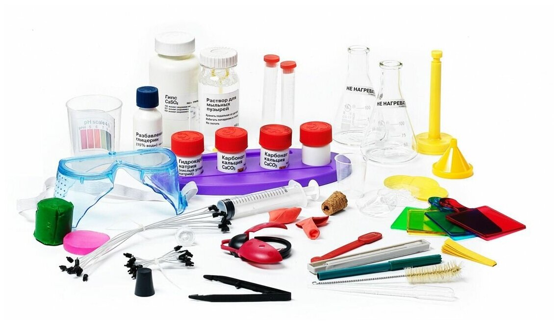 Добро пожаловать в Лабораторию химии! Можно забыть о скучных уроках и самому исследовать обычные на первый взгляд явления с научной точки зрения. В этом научно-познавательном наборе 150 захватывающих экспериментов, которые помогают узнать, что такое кислотный дождь, заставят яичную скорлупу исчезнуть, подскажут, как почистить яйцо, не прикасаясь к нему, и многое другое. В набор входят растворы и порошки, которые позволяют проводить практически все тесты, доступные в кабинете химии. Можно чистить старые монеты, моделировать скоростную лодку, делать вулкан и газовую пушку и даже сталактиты из соли. Родителям надо обязательно самостоятельно ознакомиться с инструкцией, прежде чем давать ребенку самостоятельно ставить опыты.