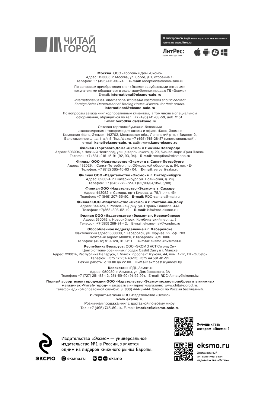 По данным нашего сервиса товар предлагался к продаже в 7 магазинах. На сегодняшний день доступен в 3 магазинах: Читай-город, Буквоед, book24. По цене от 442 р. до 442 р., средняя цена составляет 442 р., а самая низкая цена в магазине Читай-город. В случае, если для вас на данный момент цена слишком высока, вы можете воспользоваться сервисом «Сообщить о снижении цены» - мы оповестим вас как только цена опустится до желаемого значения. Но будьте внимательны, используя сервис «История цены» можно спрогнозировать в какую сторону изменяется цена, возможно сейчас самое время для покупки.