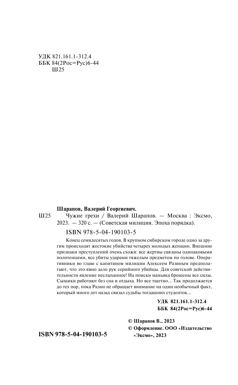 Книга: Чужие грехи (Шарапов Валерий Георгиевич); ООО "Издательство "Эксмо", 2023