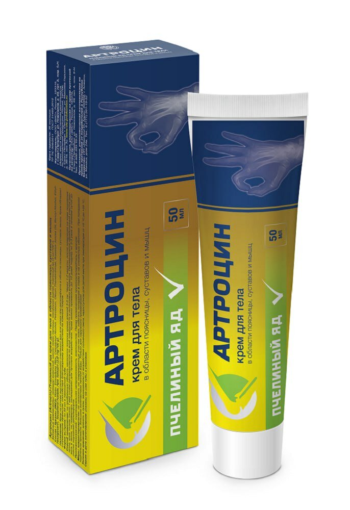 Крем на основе высокоочищенного пчелиного яда для ухода при дискомфорте в области поясницы, суставов, мышц. Крем обладает согревающим эффектом, способствуя благотворному воздействию на кожный покров. Описание компонентов: "Для снижения дискомфорта в поясничной области, в мышцах , в том числе, вызванного травмами; разогрева мышц до, во время и после физических нагрузок и занятиях спортом используют растирания, кремы, гели разогревающего действия. ""Артроцин -Пчелиный яд"" комбинированный крем для наружного применения на основе пчелиного яда, скипидара живичного и масла семян горчицы. В 100 г крема содержится 3 мг пчелиного яда. Согревающий эффект при применении крема не вызывает дискомфорта при нанесении на кожу. Улучшение местного кровообращения приводит к повышению снабжения тканей кислородом и ускоряет выведение из очага воспаления токсичных продуктов обмена веществ, вызывающих боль. Пчелиный яд — продукт секреторной деятельности желез рабочих особей медоносной пчелы. Пчелиный яд содержит ферменты, аминокислоты и пептиды (90% активного пептидного комплекса составляет меллитин, он считается основным действующим веществом пчелиного яда), которые, попадая в организм, активируют в нем многоступенчатый каскад реакций. Благодаря им пчелиный яд угнетает различные звенья воспалительного процесса и способствует обезболивающему, разогревающему и бактерицидному действию. Благодаря улучшению проницаемости кожных покровов, способствует более глубокому проникновению активных компонентов в проблемную область. Скипидар живичный (масло терпентинное) – жидкая смесь терпеновых углеводородов, таких как α-пинен, β-пинен, лимонен, Δ3-карен и камфен, получаемая из смол хвойных деревьев. Живичный скипидар изготавливается путем перегонки сосновой живицы с водяным паром. Способствует раздражающему, отвлекающему и противовоспалительному действию. Компоненты масла семян горчицы вызывают глубокое прогревание тканей, что улучшает микроциркуляцию и способствует снижению болевого синдрома и отека в местах воспаления. Токоферил ацетат (Витамин Е) - антиоксидант, выравнивает рельеф кожи, улучшает эпителизацию, смягчает роговой слой, обладает противовоспалительной активностью. Активное вещество: скипидар живичный, масло семян горчицы, токоферил ацетат, пчелиный яд (3 мг/100 г).