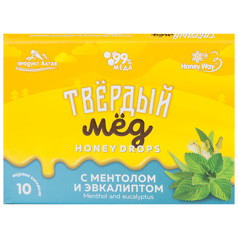 Алтайский мёд в сочетании с эфирными маслами эвкалипта и ментола поможет при заболеваниях горла и носоглотки. Самый освежающий вкус из нашей линейки.