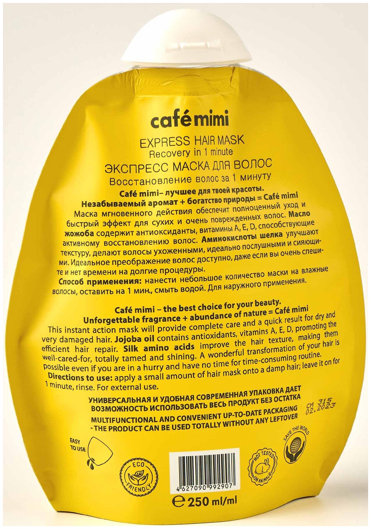Маска для волос экспресс для восстановления волос за минуту жожоба и протеины шелка Cafe mimi 250мл ООО ДизайнСоап (1578804)