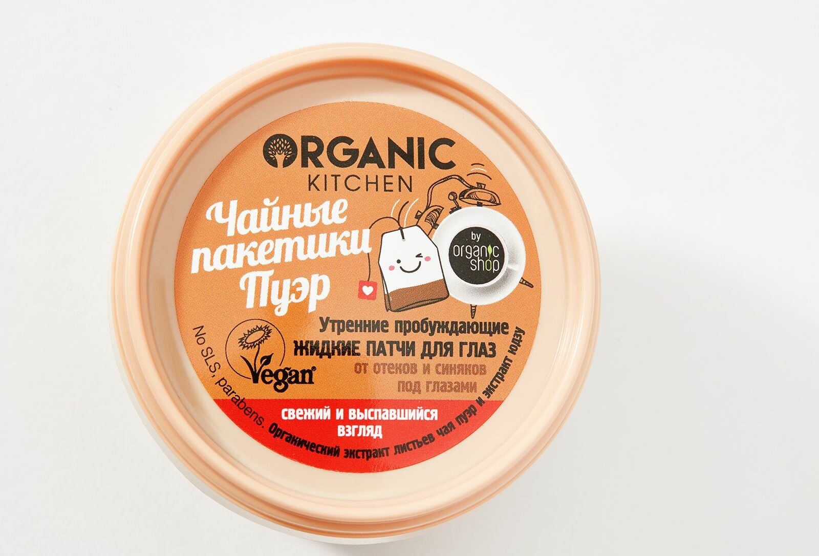 Маска-патчи жидкие для глаз утренниe пробуждающие чайные пакетики пуэр Organic Kitchen/Органик Китчен банка 100мл ООО Органик Шоп Рус (1466228)