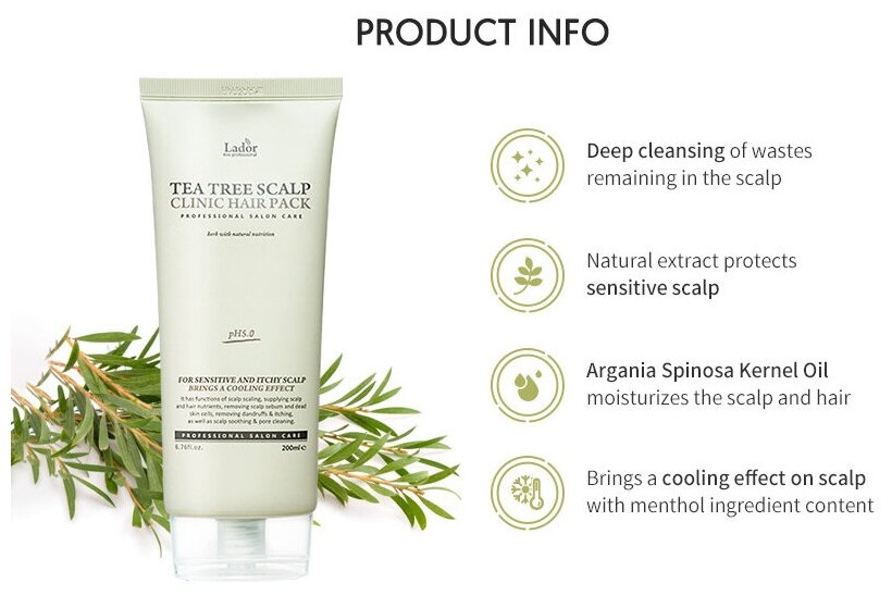 Маска для кожи головы с чайным деревом Tea tree scalp clinic Lador/Ладор 200мл La'Dor (2254212)