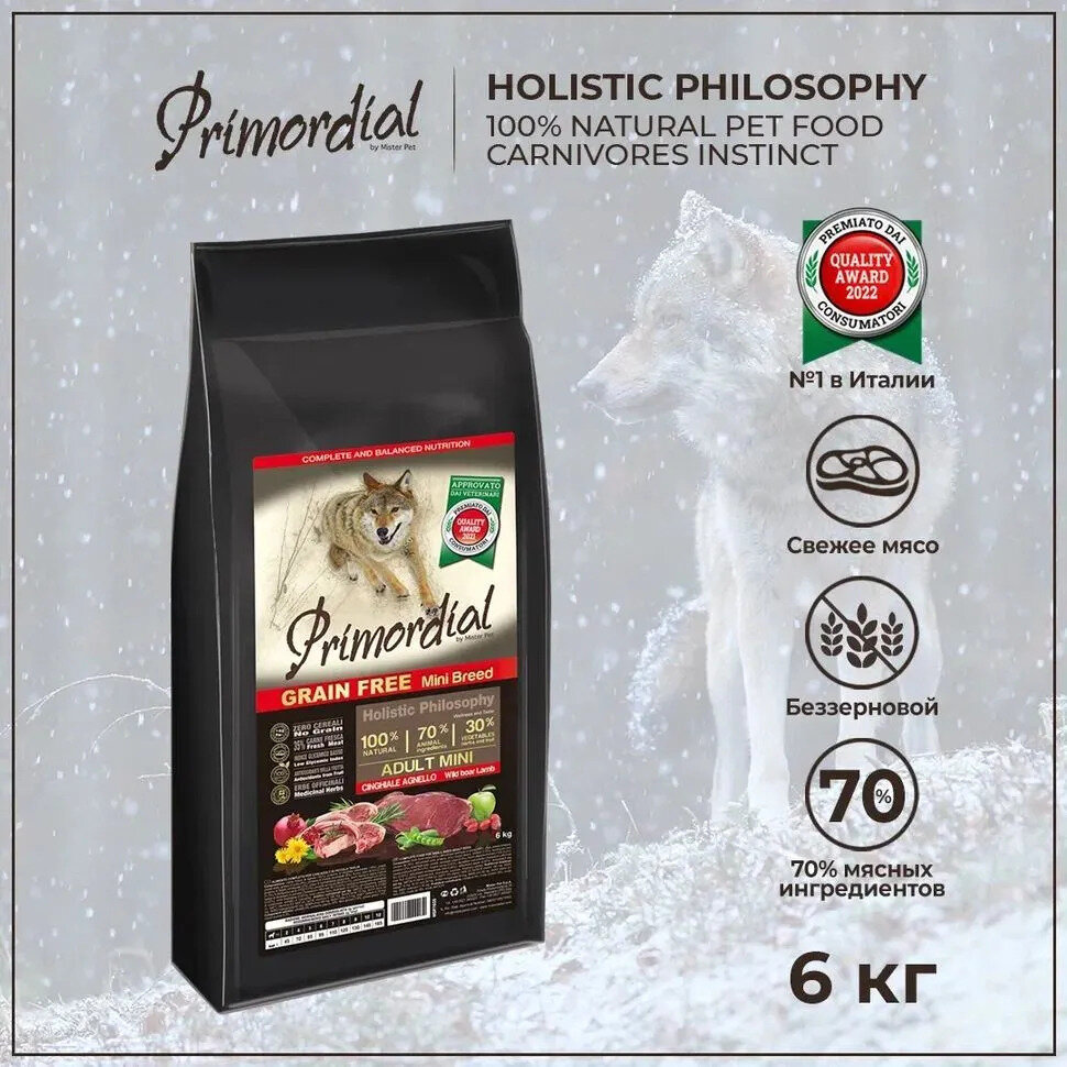 Корм сухой для собак мелких пород беззерновой кабан и ягненок Mini Adult Primordial 6кг MISTER PET (2413808)