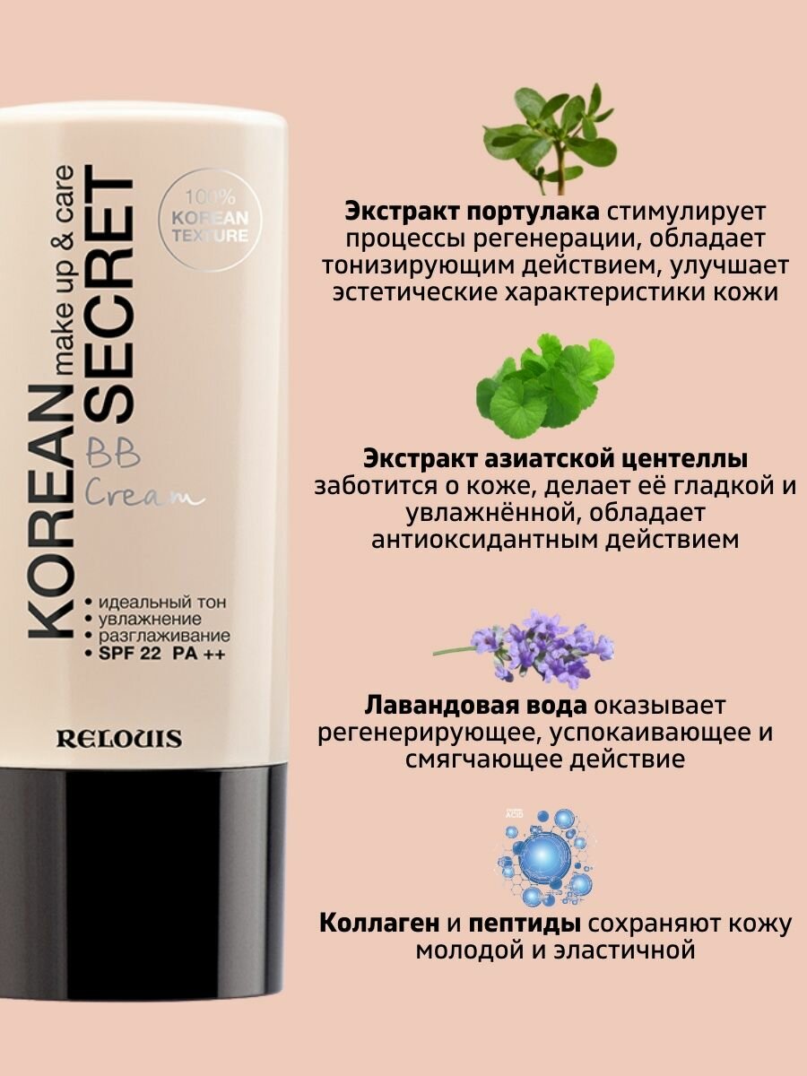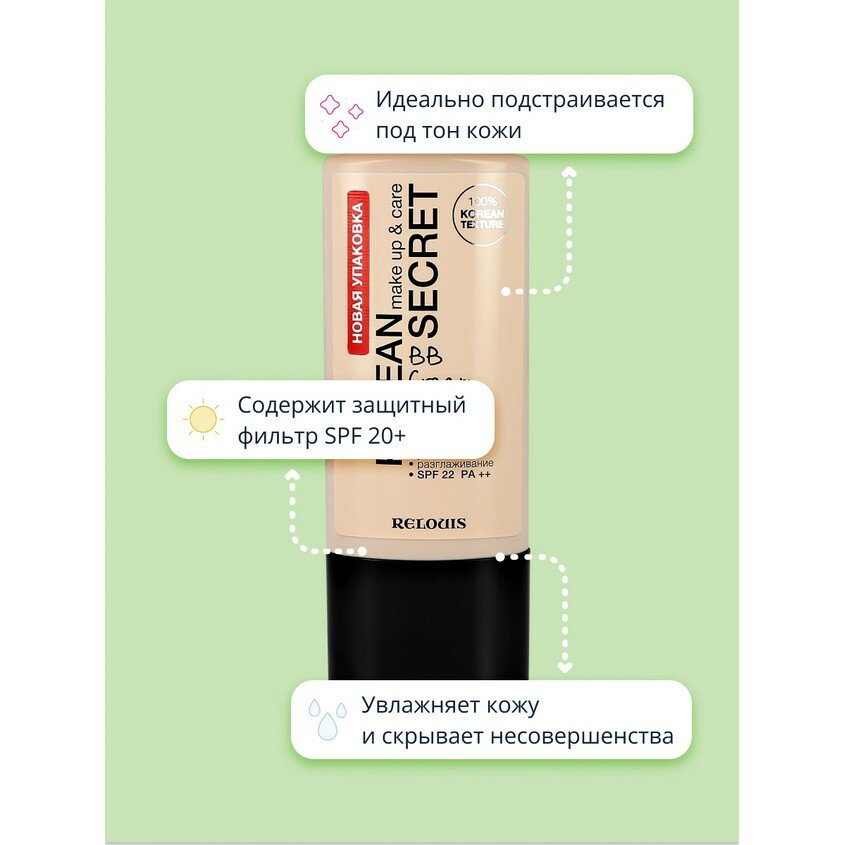 BB-крем "Korean Secret" от Relouis – это настоящая находка для ценительниц естественной красоты. Обладая легким покрытием, он безупречно выравнивает тон кожи, придавая ей свежий и здоровый вид. Оттенок "слоновая кость" прекрасно адаптируется к оттенку кожи, создавая эффект натурального цвета лица.
