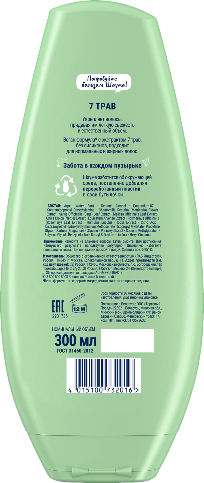 На сегодняшний день товар «Бальзам 7 трав Schauma/Шаума 200мл ХенкельRU (1568370)» можно купить с кешбеком в 1 магазине: Яндекс.Маркет