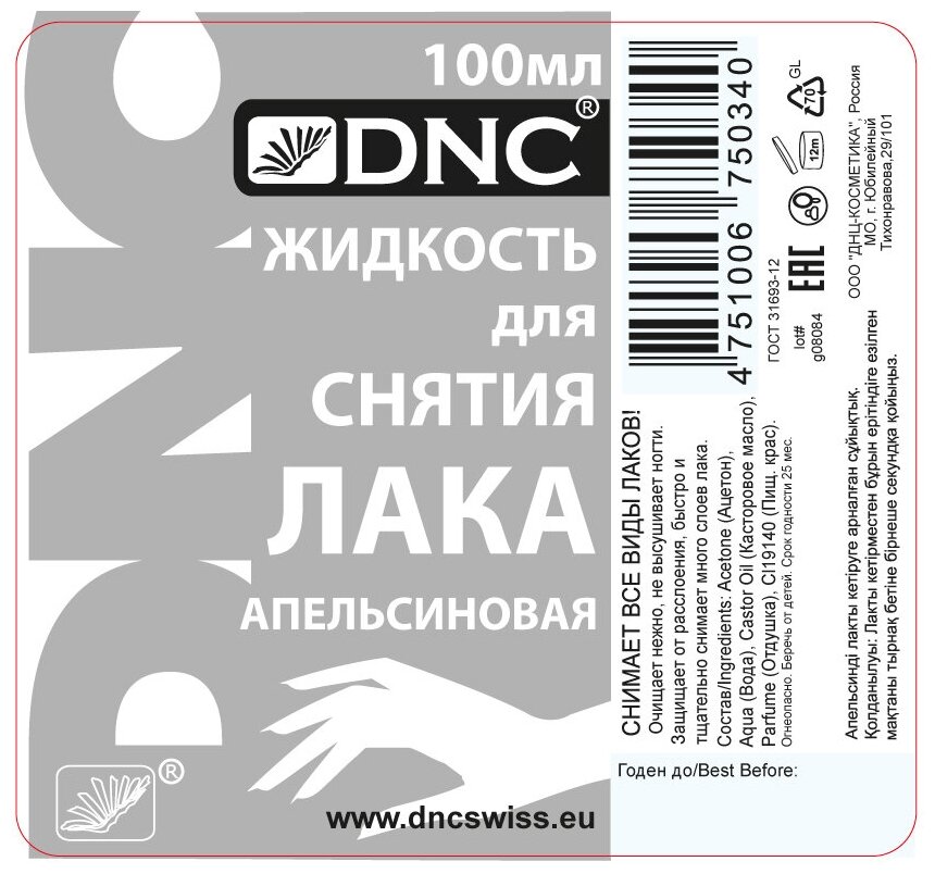 Жидкость для снятия лака апельсиновая DNC 100мл ООО ДНЦ-Косметика (2472662)