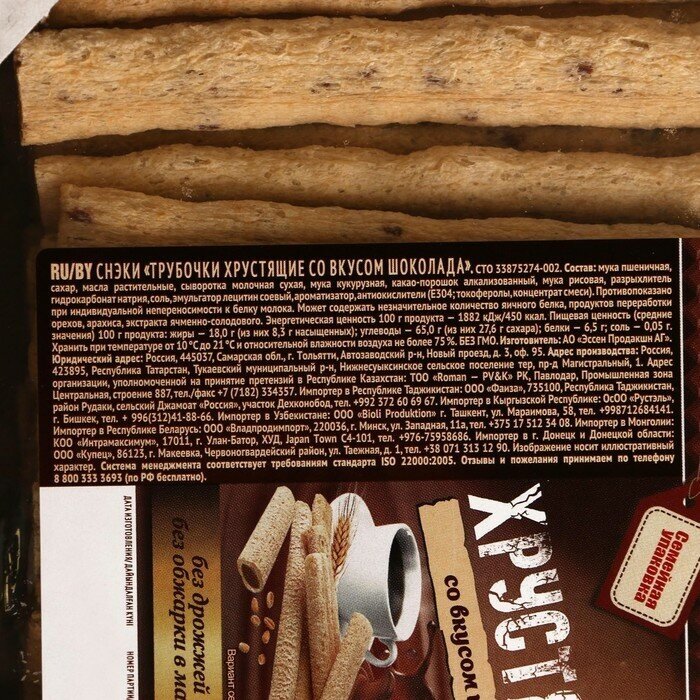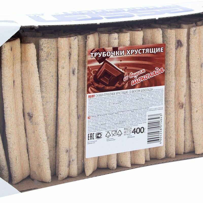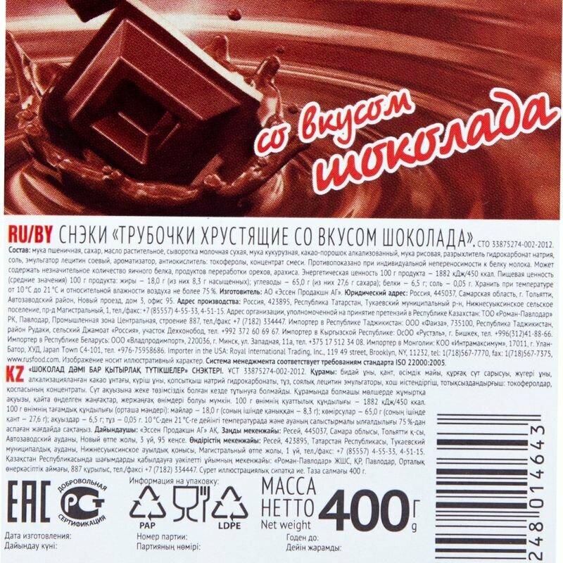 Снэки Эссен продакшн Трубочки хрустящие со вкусом шоколада 400г