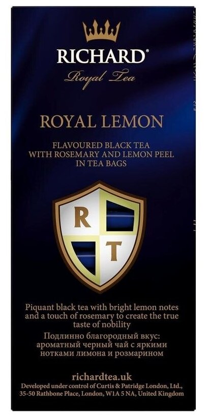 Подлинно благородный вкус: ароматный чёрный чай с яркими нотками лимона и розмарином.