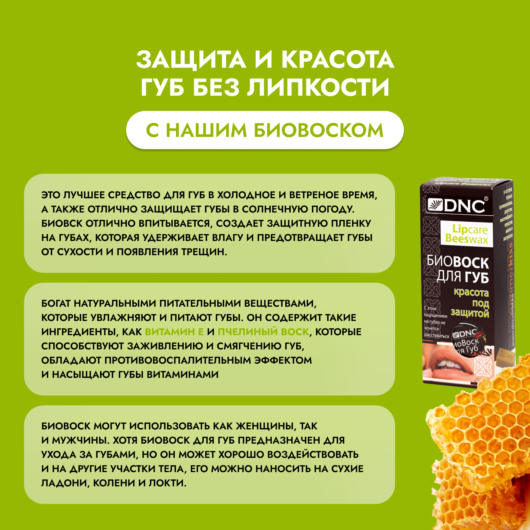 | Полное наименование | Биовоск для губ «Красота под защитой» |
