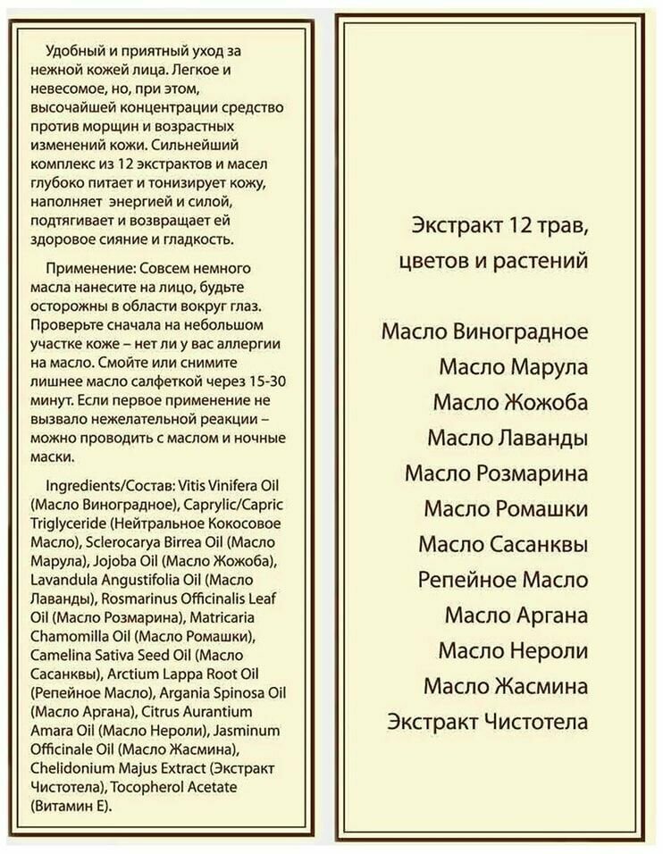 | Эффект | питательный; увлажняющий; тонизирующий |