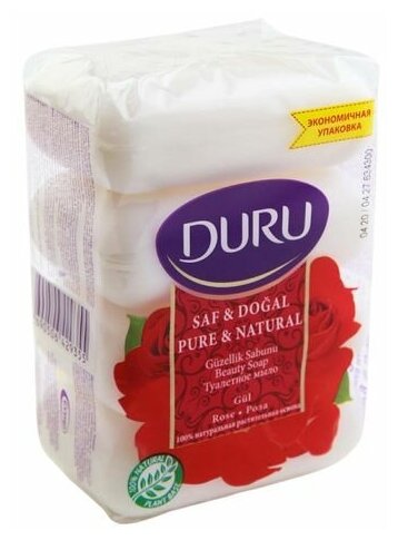 Мыло Duru Pure & Natural Роза 85г*4шт Evyap Sabun