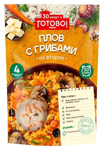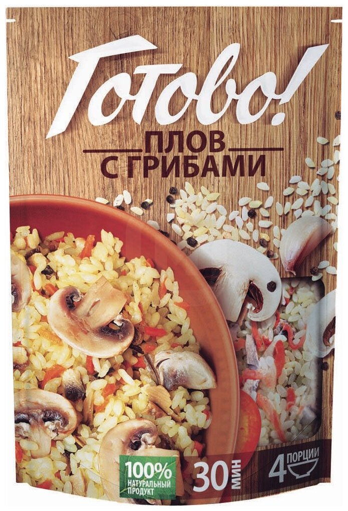 Плов – блюдо, любимое многими. Плов с грибами – прекрасная возможность сэкономить время на приготовление обеда или ужина. Блюдо станет незаменимым в походах, поездках на природу. Готовить плов просто и быстро – продукт имеет сбалансированный состав и характеризуется высоким качеством. Качественная крупа, натуральные сушеные овощи, грибы и приправы, добавленные в нужной пропорции, делают это блюдо особенно аппетитным. Грибы отдают рису легкий аромат и вкус, плов получается вкусным и сытным. Запах грибов и сливочного масла мгновенно соберет за столом всю семью. Подходит для приготовления в мультиварке. Без глутамата. Без ароатизаторов. Без консервантов.