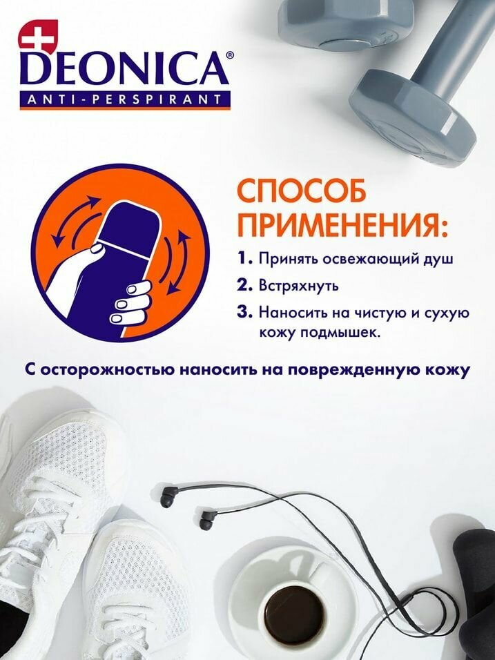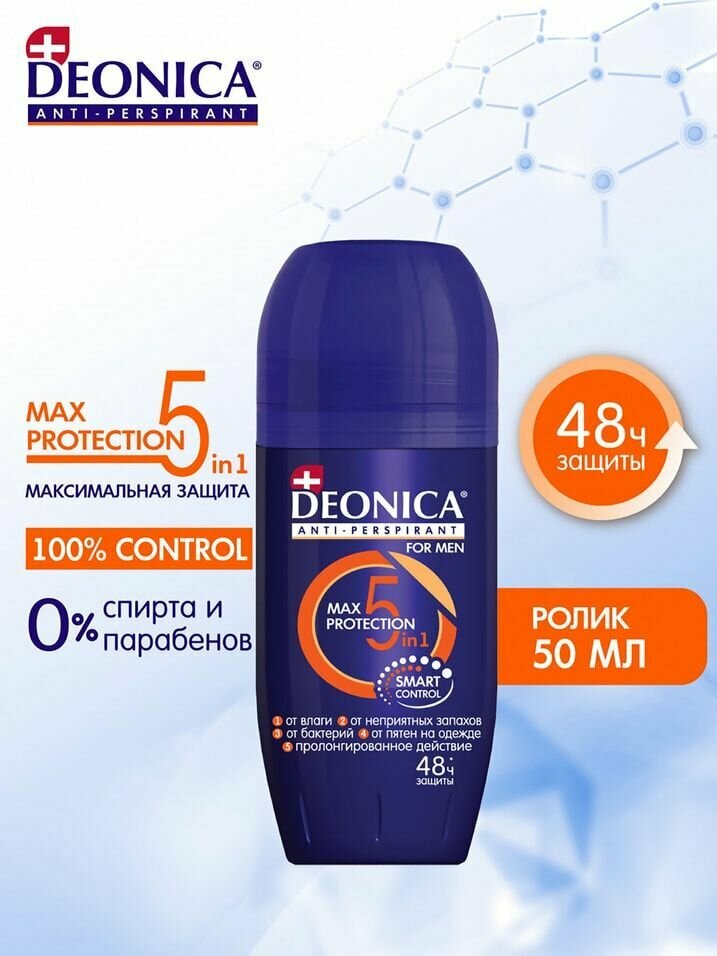 Уникальный мужской антиперспирант Deonica For Men 5 Protection благодаря специальной формуле обеспечивает максимальную защиту на 48 часов от влаги, неприятных запахов, бактерий, пятен на одежде.