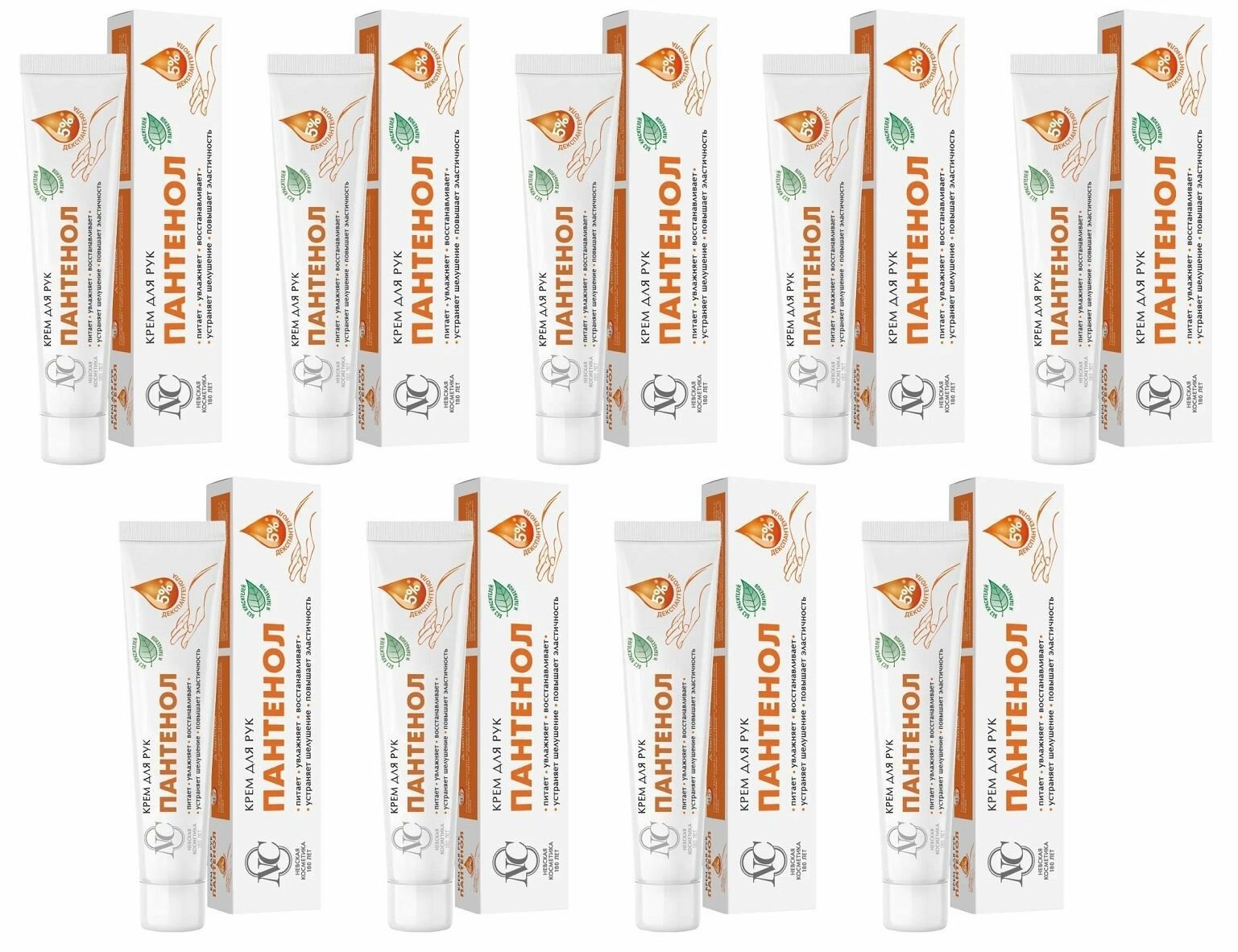 Крем предназначен для ежедневного ухода за кожей рук. Благодаря содержанию Д-пантенола и масла ши крем питает, смягчает, увлажняет, успокаивает, восстанавливает, устраняет шелушения, повышает эластичность кожи. Не содержит красителей и парабенов. Д-пантенол (провитамин В5) обладает противовоспалительным действием, предотвращает и устраняет появление трещинок и раздражений, сохраняя кожу гладкой, мягкой и увлажненной. Масло ши защищает кожу, обладает заживляющими и противовоспалительными свойствами, делая кожу мягкой и гладкой. В комплекте 9 шт