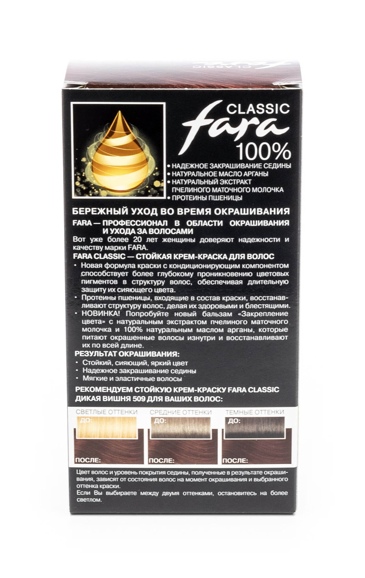 Fara "Classic" - это стойкая краска для волос, которая обеспечивает равномерное окрашивание и закрашивание седины. Благодаря входящему в состав маслу арганы, волосы после окрашивания приобретают здоровый блеск и мягкость.