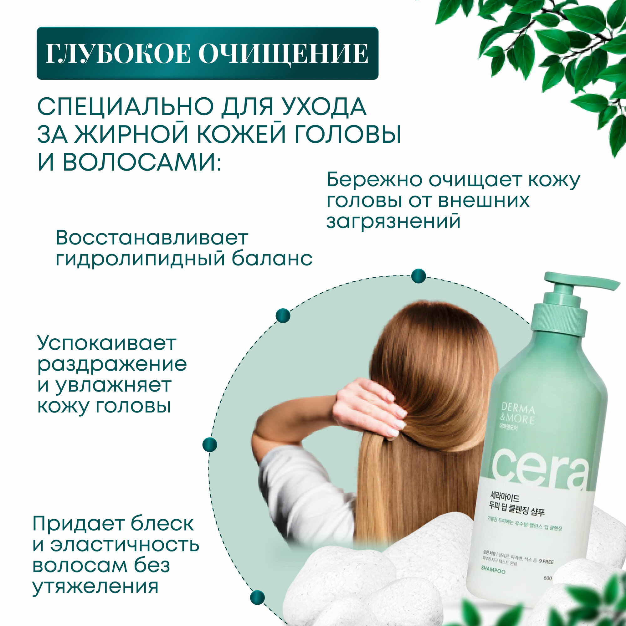 Специально разработанная формула для ухода за жирной кожей головы и волосами. Мягко и эффективно, не вызывая раздражения, очищает жирную кожу голову. Церамиды и масло семян зелёного чая восстанавливают гидролипидный баланс кожи. Средство прошло дерматологические испытания. Формула 9 Free без опасных ингредиентов: силикона, парабенов, изотиазолинона, бензофенона, красителей, триэтаноламина, ингредиентов животного происхождения, бензалкония хлорида, триклозана.