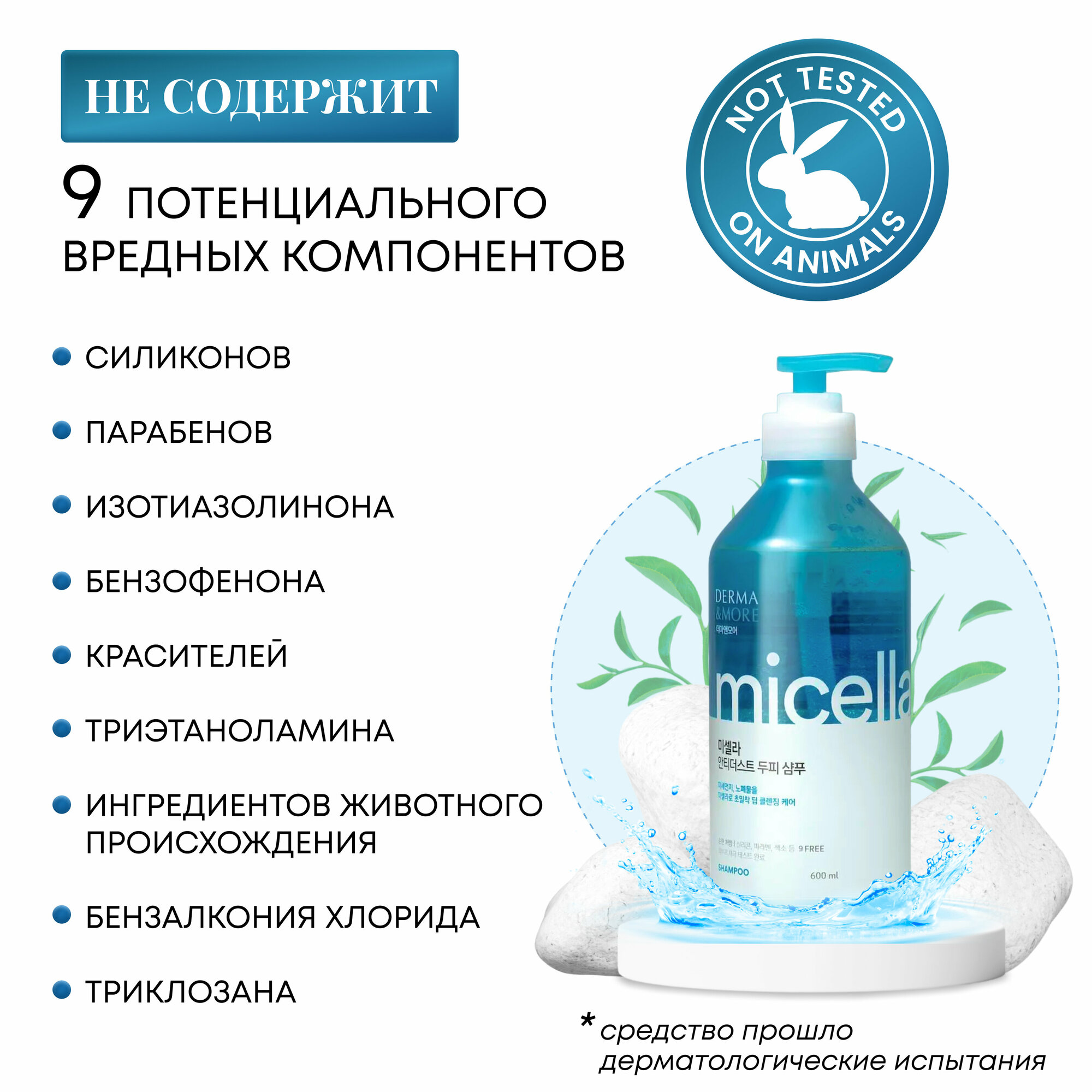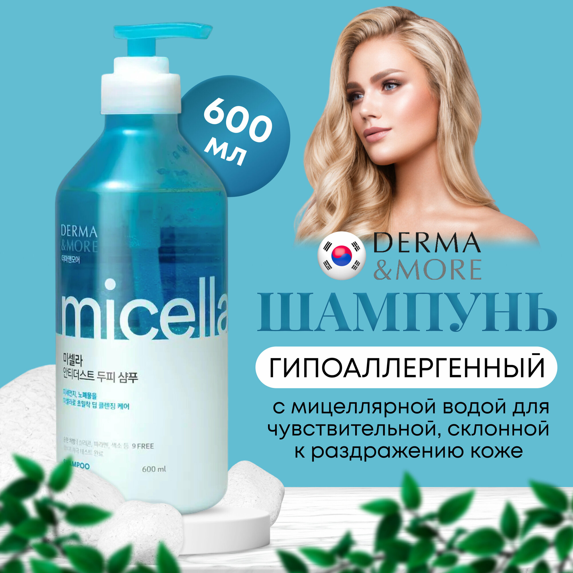 Шампунь для волос Derma & More Мицеллярный от перхоти 600мл Aekyung Industrial