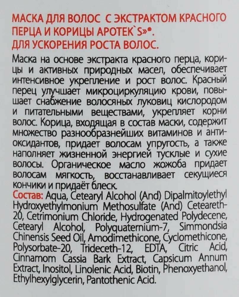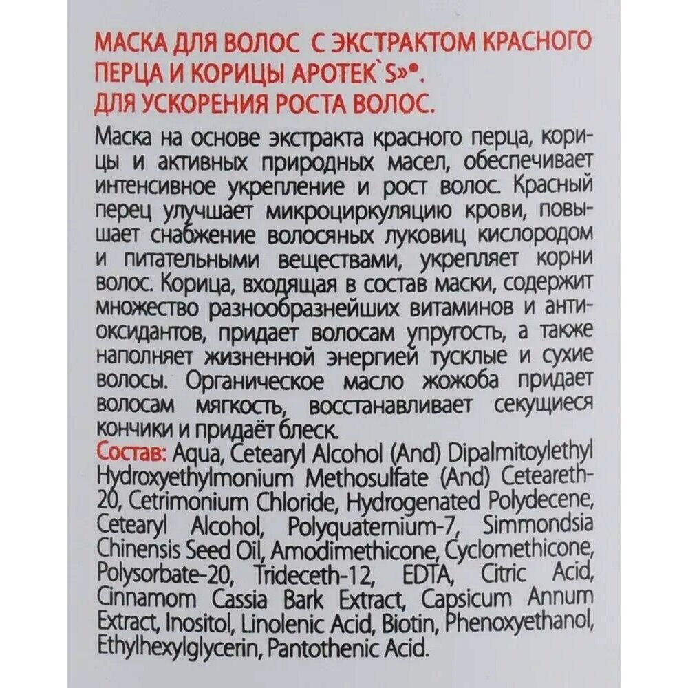 Маска для волос Apotek's с экстрактом красного перца и корицы 250мл МИРРОЛЛА