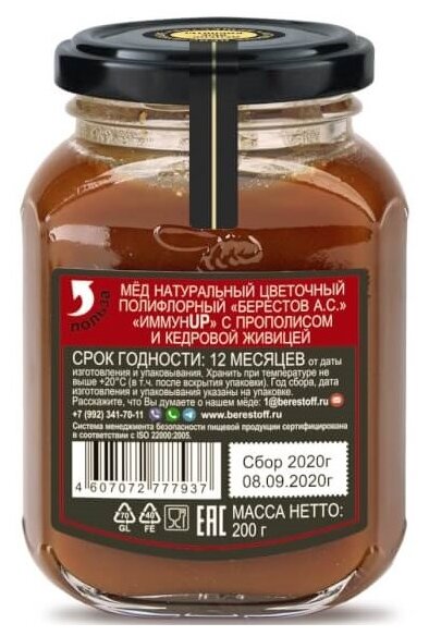 Мед Берестов А.С. С прополисом 200г Частные пасеки Берестова