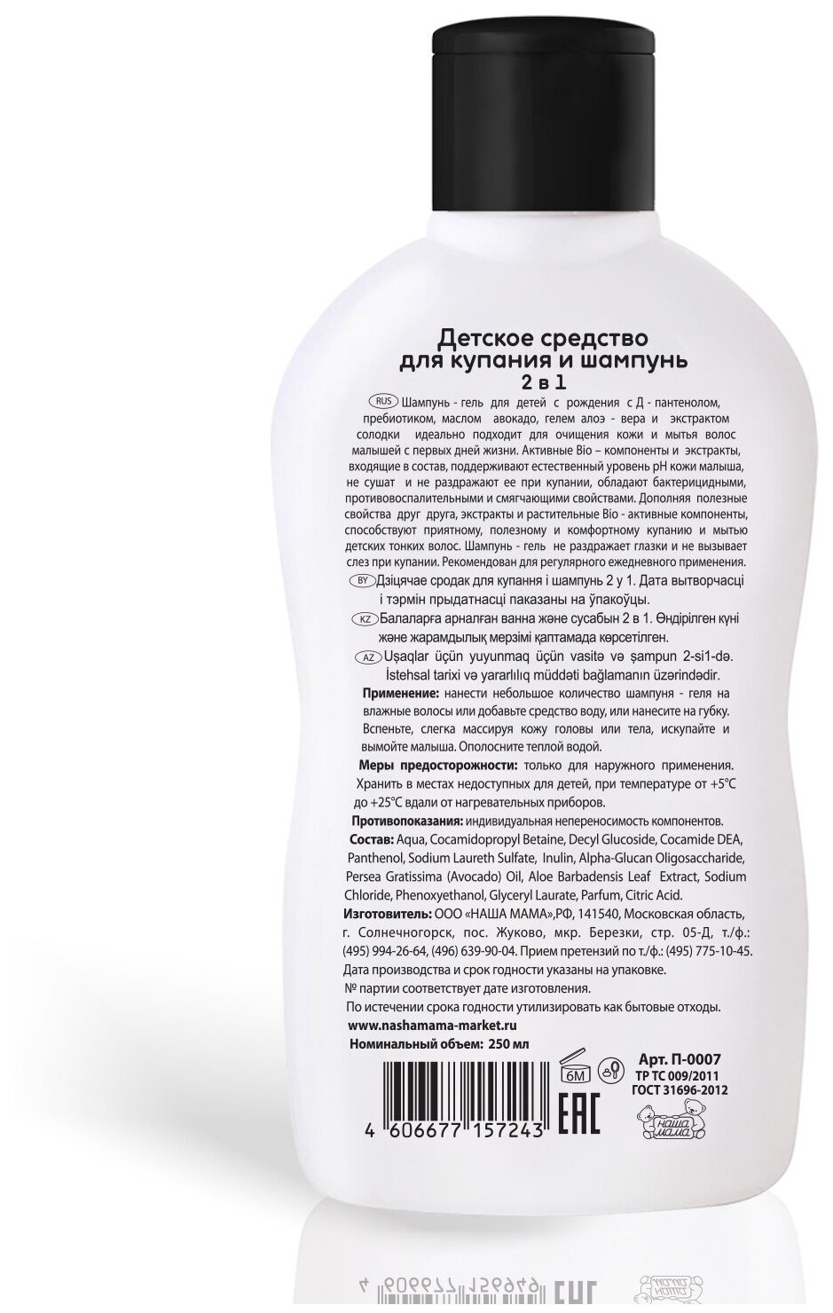 Шампунь-гель для купания серии «banda Panda» 2 в 1 для детей с рождения с пребиотиком, Д-пантенолом, маслом авокадо, соком алоэ-вера и экстрактом солодки. Шампунь-гель идеально подходит для очищения кожи и мытья волос малышей с первых дней жизни. Активные Bio-компоненты и экстракты, входящие в состав, поддерживают естественный уровень рН кожи малыша, не сушат и не раздражают ее при купании, обладают бактерицидными, противовоспалительными и смягчающими свойствами. Дополняя полезные свойства друг друга, экстракты и растительные Bio-активные компоненты, способствуют приятному, полезному и комфортному купанию и мытью детских тонких волос. Шампунь-гель не раздражает глазки и не вызывает слез при купании. Шампунь-гель не содержит мыла, красителей, силиконов и парабенов. Рекомендован для регулярного ежедневного применения.