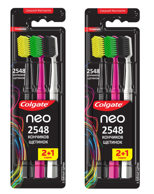 Зубная щетка Colgate Neo 2548 Кончиков щетинок средней жесткости 2+1шт Colgate-Palmolive