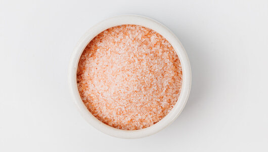 Гималайская розовая соль – чистая природно-кристаллическая каменная нерафинированная соль. Больше всего в розовой соли железа, именно оно и придает ей такие цвета. Розовая соль имеет особенную ценность. Залежи этой чистой кристаллической соли образовались 250 миллионов лет назад, во времена Юрского периода. когда формировались континенты, и земная кора подвергалась мощным геологическим воздействиям. Индия, бывшая тогда отдельным континентом, двигалась навстречу Евразии, с большой, по геологическим меркам, скоростью, образуя в месте столкновения континентов Гималайские горы. Соль океана, омывавшего эти когда-то отдельные континенты, и соль древних морей на территории современных Индии и Пакистана, постепенно осаждалась на новообразованных горных породах и выталкивалась на высоту 3000 м. Все это сопровождалось активными вулканическими процессами, пласты соли взаимодействовали с магмой и подвергались огромному давлению осадочных известняковых пород. В результате таких воздействий и возник уникальный по своей природе и составу минерал, имеющий розовую окраску – гималайская розовая соль. Добыча розовой соли ведется ручным способом, без применения взрывчатых веществ. Розовая соль содержит по разным данным от 82 до 92 микроэлементов. В зависимости от соотношения минералов розовая соль имеет ряд оттенков – от персикового до насыщенного розового. Розовая соль имеет свой индивидуальный вкус и аромат. По сравнению с поваренной солью соленость розовой гималайской соли кажется более насыщенной. Ее вкус прекрасно дополнит вкус самих блюд, в том числе сырых блюд и салатов. В розовой соли много железа, именно оно и придает ей такие цвета. Кроме железа розовая соль содержит медь, калий, магний, кальций, фосфор, бор, хром, фтор, йод, марганец, молибден, селен, цинк. Средняя пищевая ценность в 100 г продукта: Белок – 0 г Жиры – 0 г Углеводы – 0 г Холестерин, жирные кислоты – 0 г Натрий (не менее) – 34 г Калий (не менее) – 0,07 г Кальций (не менее) – 0,08 г Магний (не менее) – 0,04 г Энергетическая ценность: 0 ккал. Соль мелкого помола.