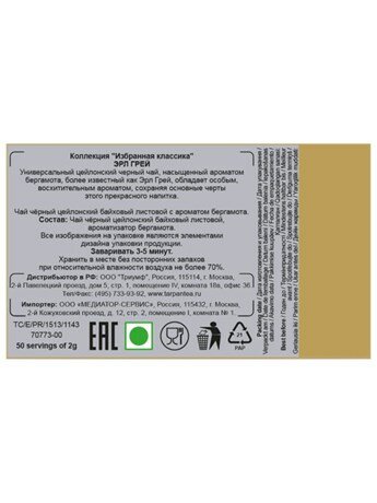 | Состав | Чай черный цейлонский байховый листовой, ароматизатор бергамота. |