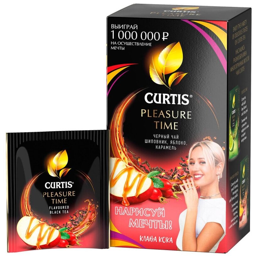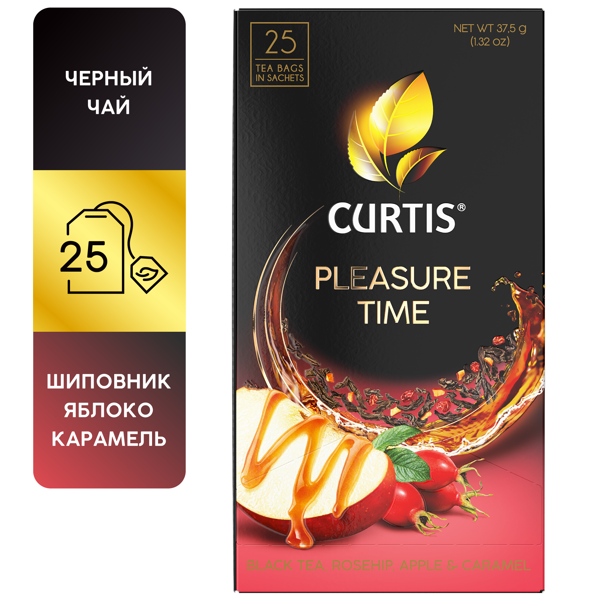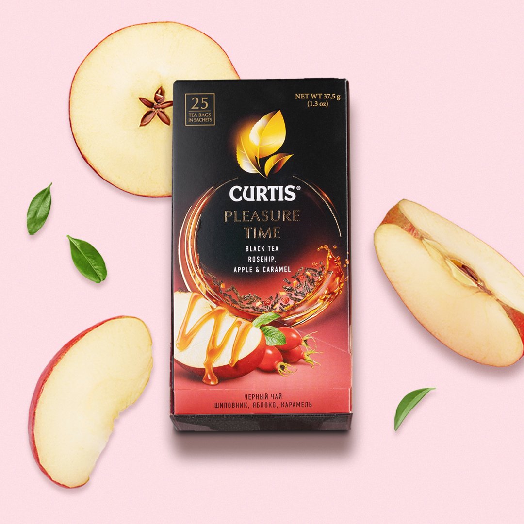Чай Curtis Pleasure Time черный c шиповником яблоком и ароматом карамели 25*1.5г Компания Май