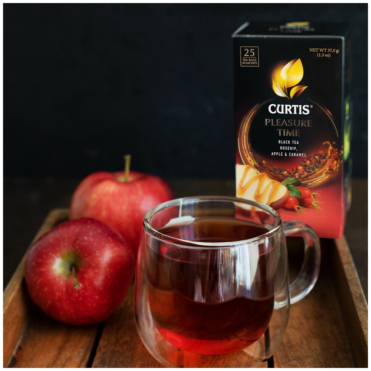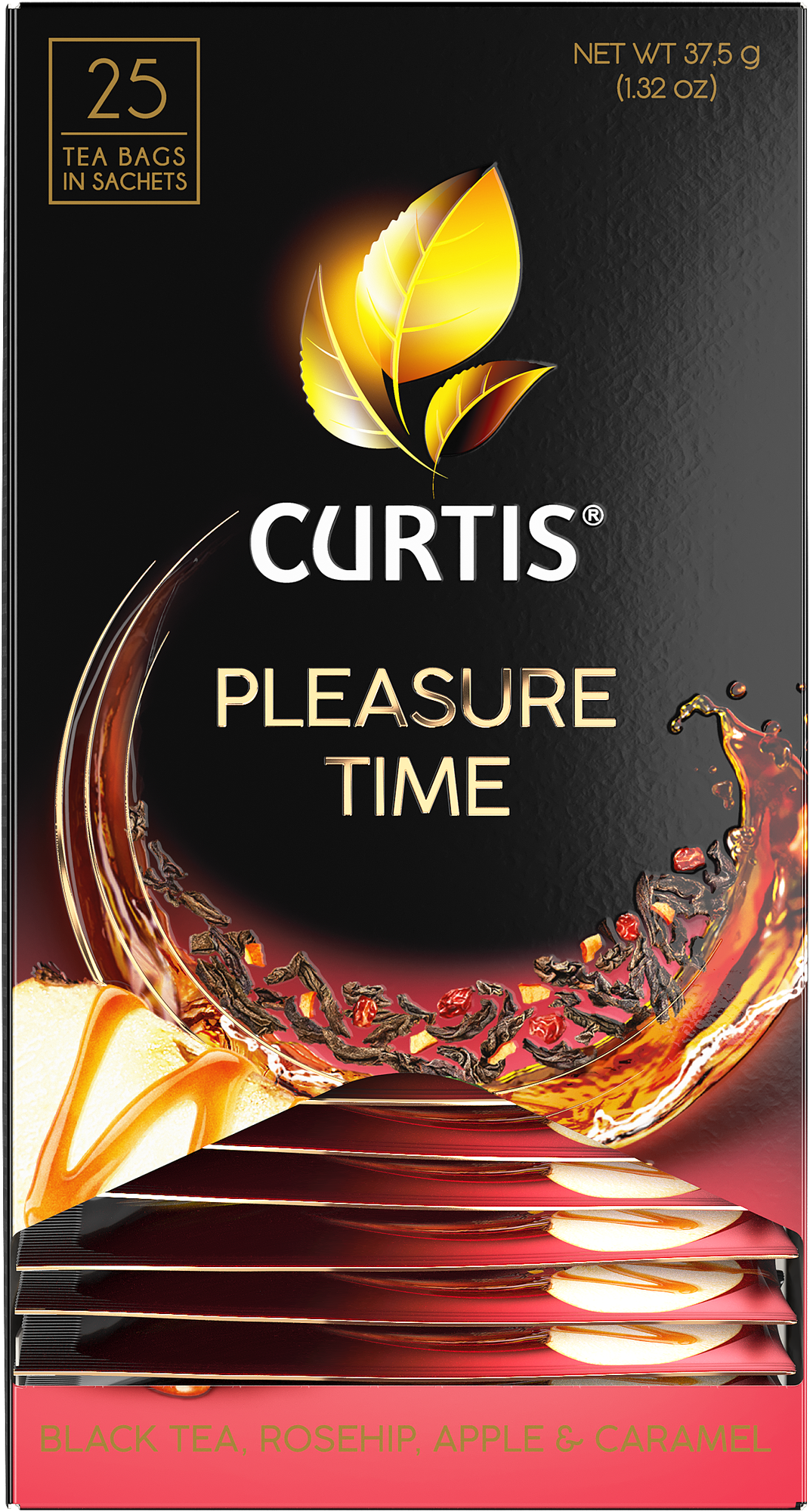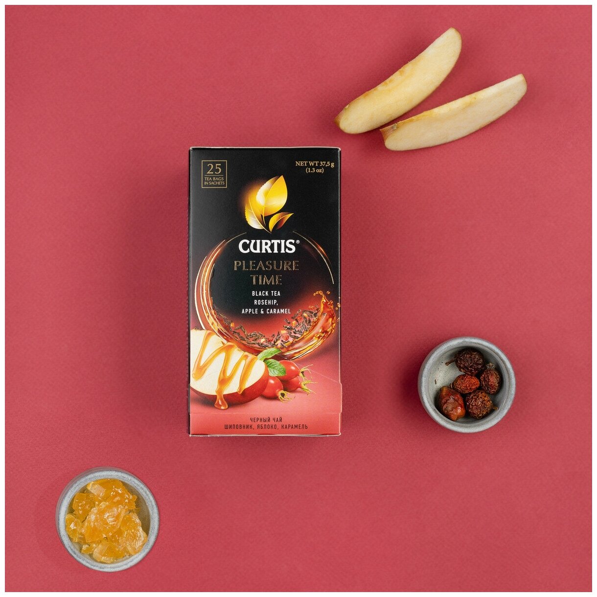 Чай Curtis Pleasure Time черный c шиповником яблоком и ароматом карамели 25*1.5г Компания Май