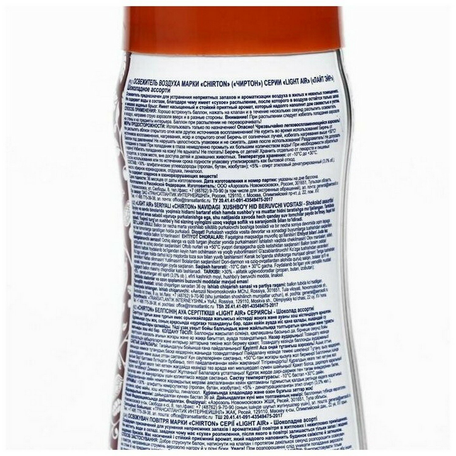 | Состав | смесь пропана, бутана и изобутана (> 30%); растворитель (< 5%), парфюмерная композиция (< 5%), эфирные масла (< 5%). не содержит хладонов и озон разрушающих веществ |