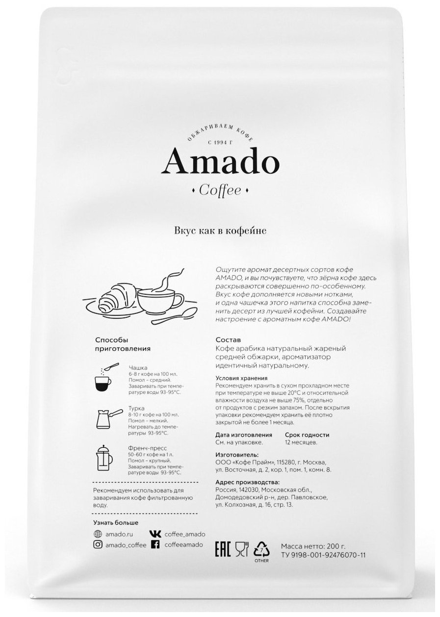 Кофе молотый Amado Шоколад баварский 200г Кофе Прайм