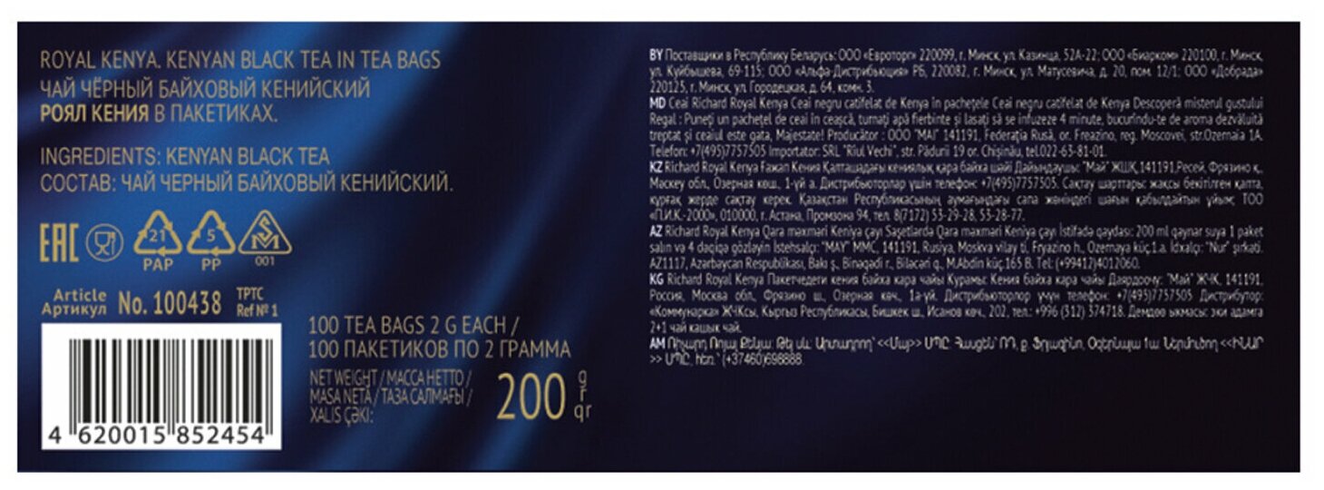 На сегодняшний день товар «Чай черный Richard Royal Kenya 25*2г Май» можно купить с кешбеком в 4 магазинах: Ашан, ГЛОБУС, Яндекс.Маркет, Vprok (Перекресток)