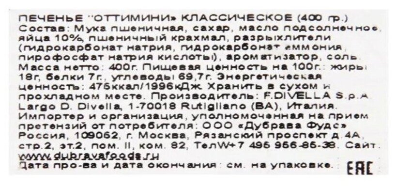 Печенье Divella Оттимини Классическое 400г F. Divella S.p.A.
