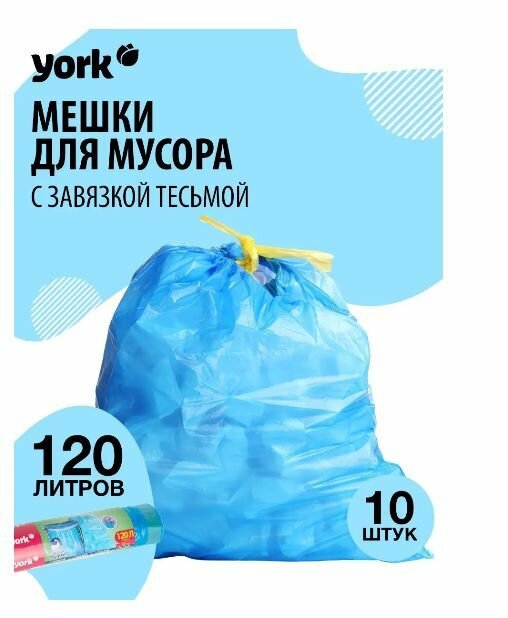 Мешки YORK 902210 предназначены для каждодневного использования на даче, дома, в офисе и т. д. Подходят для сбора бытового мусора, бумаги, пищевых отходов. Мешки произведены из полиэтилена низкого давления, отличаются прочностью - не протекают и не рвутся во время транспортировки мусора. Легко отрываются, подходят для ведра объемом 120 литров. Мешки оснащены тесьмой, которая позволяет легко извлечь мешок из ведра, надежно завязать, а также служит в качестве ручек для переноски. Внимание, изображение товара может отличаться от реального! Верные параметры указаны в технических характеристиках товара.